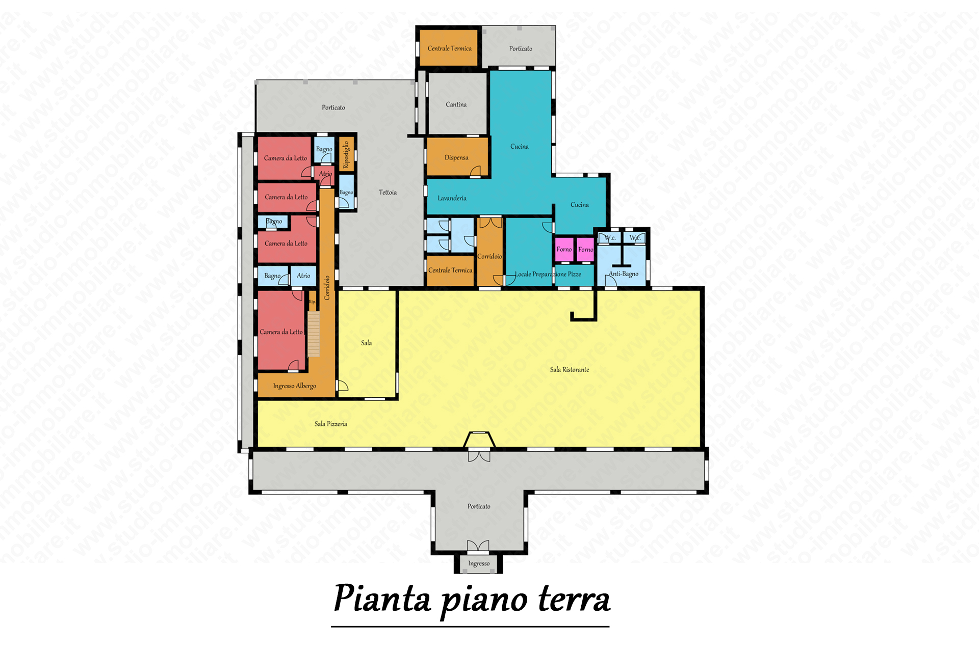 L’albergo a tre stelle, dispone di sette camere con bagno, con possibilità di ampliamento fino ad ulteriori 1500 metri quadrati.