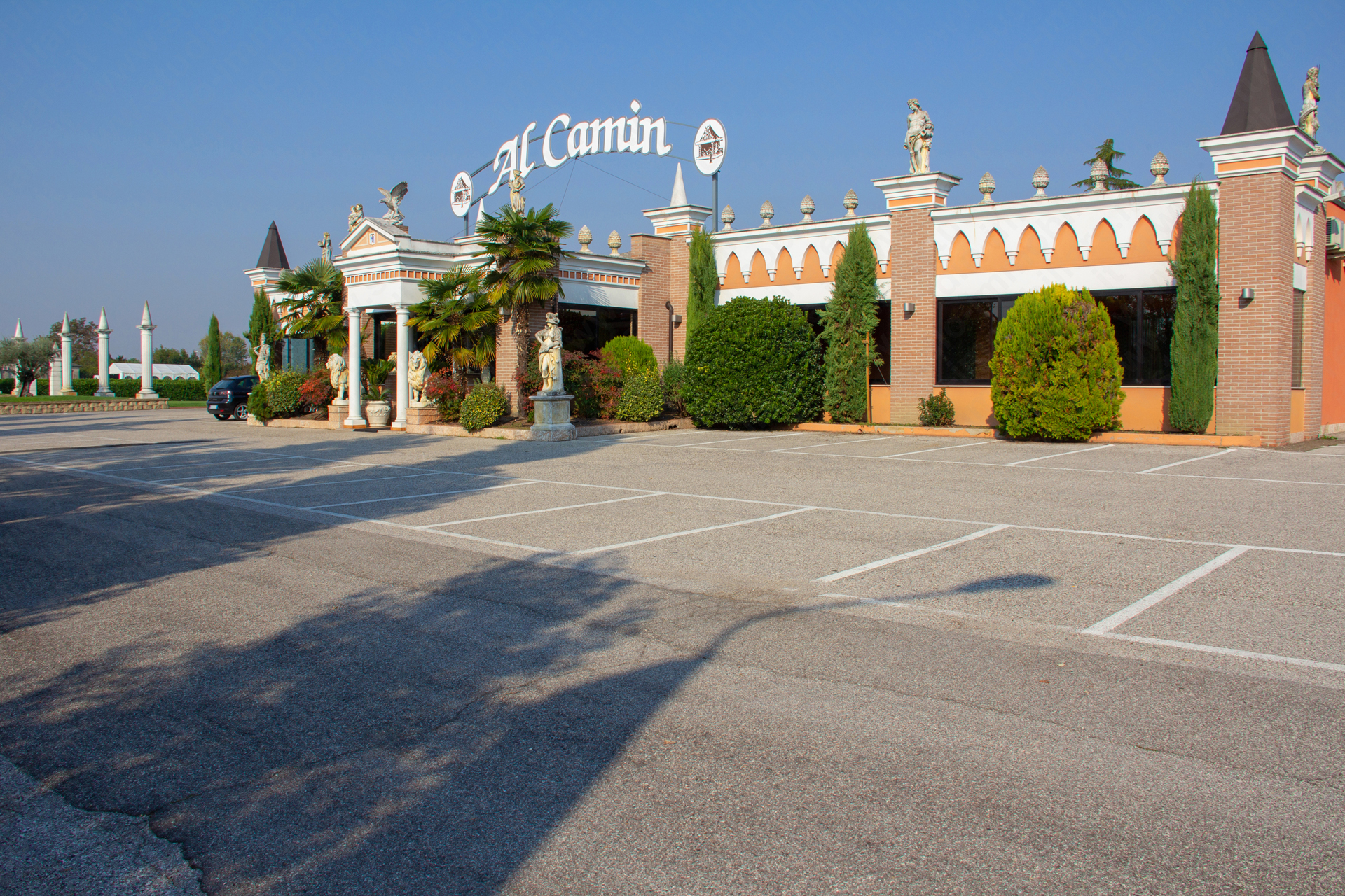 La struttura perfettamente efficiente è sita su un area complessiva di metri quadrati 15.464 con ampio parcheggio asfaltato, un parco ed una piazzetta con giardino per rendere indimenticabili le vostre cerimonie.