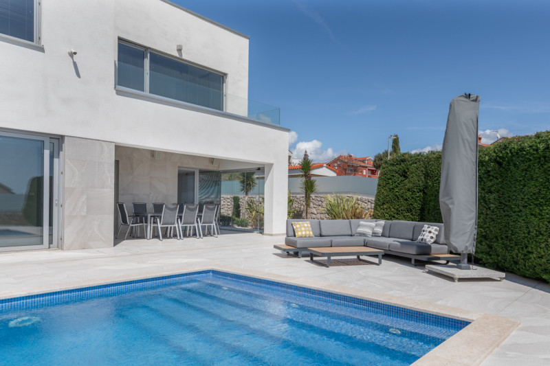 Nel cuore della zona residenziale più prestigiosa della città di Krk, in una tranquilla via circondata da eleganti abitazioni moderne, sorge questa straordinaria villa di design. Un immobile unico che fonde estetica contemporanea, comfort di alto livello e tecnologia all’avanguardia, offrendo una qualità di vita senza compromessi.